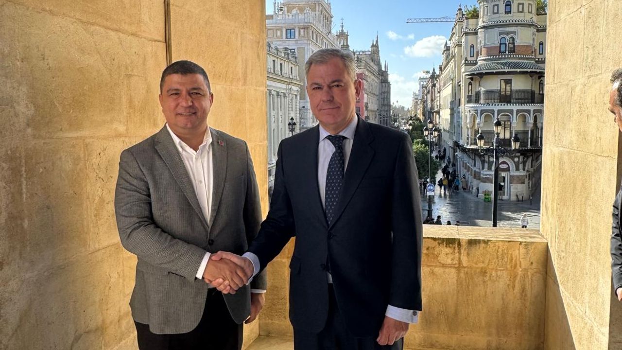 Daha sonra Sevilla Belediyesi ziyaret edildi. Burada Sevilla Belediye Başkanı José Luis Sanz ile görüşen Başkan Okuroğlu, Tire’nin coğrafi işaretli kültür değerlerinden 500 yıllık beledi dokumasıyla hazırlanan kravat hediye etti.