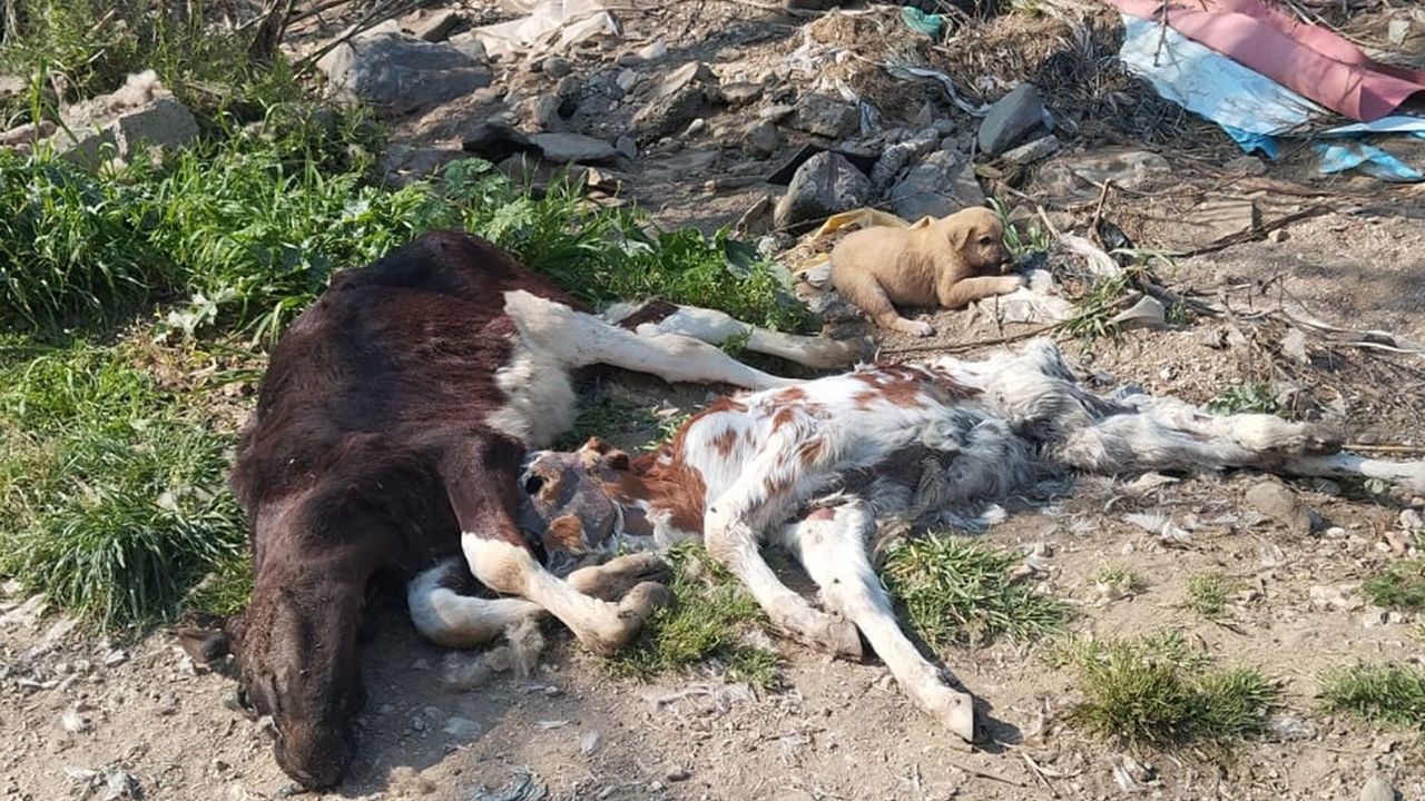 Tire’nin pek çok bölgesine kimliği belirsiz kişiler tarafından hayvan ölüleri atılıyor. Boynuyoğun Köyü’ndeki üç kavak mevkii bunların başını çekiyor. Buraya hemen her hafta 2-3 hayvan atılıyor. Son tablo oldukça korkutucu. Büyükbaş hayvan bedenlerinin yanında 2 tane de cansız köpek bedeni var. Muhtemelen büyükbaş hayvanları yedikten sonra öldüler. Konu Tire’nin önemli gündemlerinden biri olmasına rağmen ne yazık ki hiçbir şey yapılmıyor.