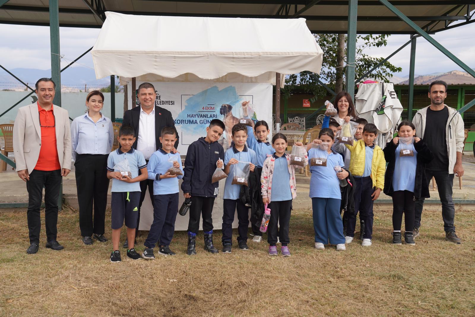 Programda öğrencilerle uzun uzun vakit geçiren Belediye Başkanı Hayati Okuroğluı, öğrencilere kedi ve köpek maması ile birlikte Tire Belediyesi tarafından hazırlanan hediyeleri dağıttı. Çocuklar, bakımevindeki hayvanlarla vakit geçirerek hem eğlendi hem de hayvan sevgisi ve korunması konusunda bilinçlendirildi.