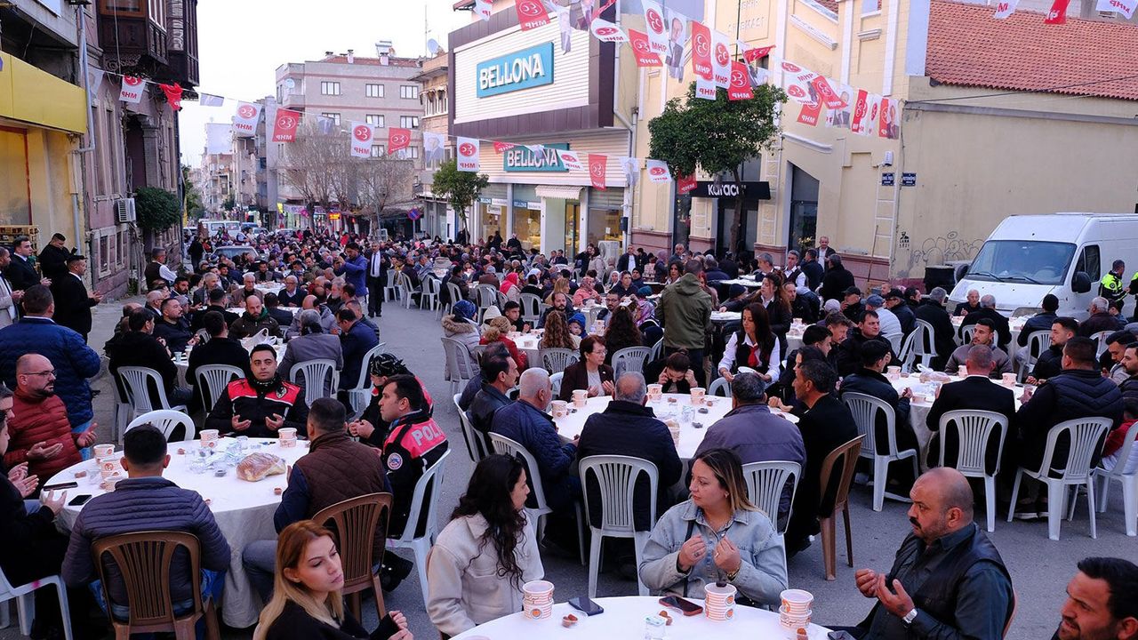 Birlik, berberlik, dayanışma ve paylaşmayı amaçlayan program MHP’nin Yıldız Meydanı’ndaki parti binası önünde gerçekleştirildi. Programın ev sahipliğini İlçe Başkanı Recep Doğru yaptı. Meydanda kurulan yüzlerce masa partili partisiz vatandaşlar tarafından dolup taştı. Tire’de düzenlenen iftar programına İl Başkanı Veysel Şahin de katıldı.