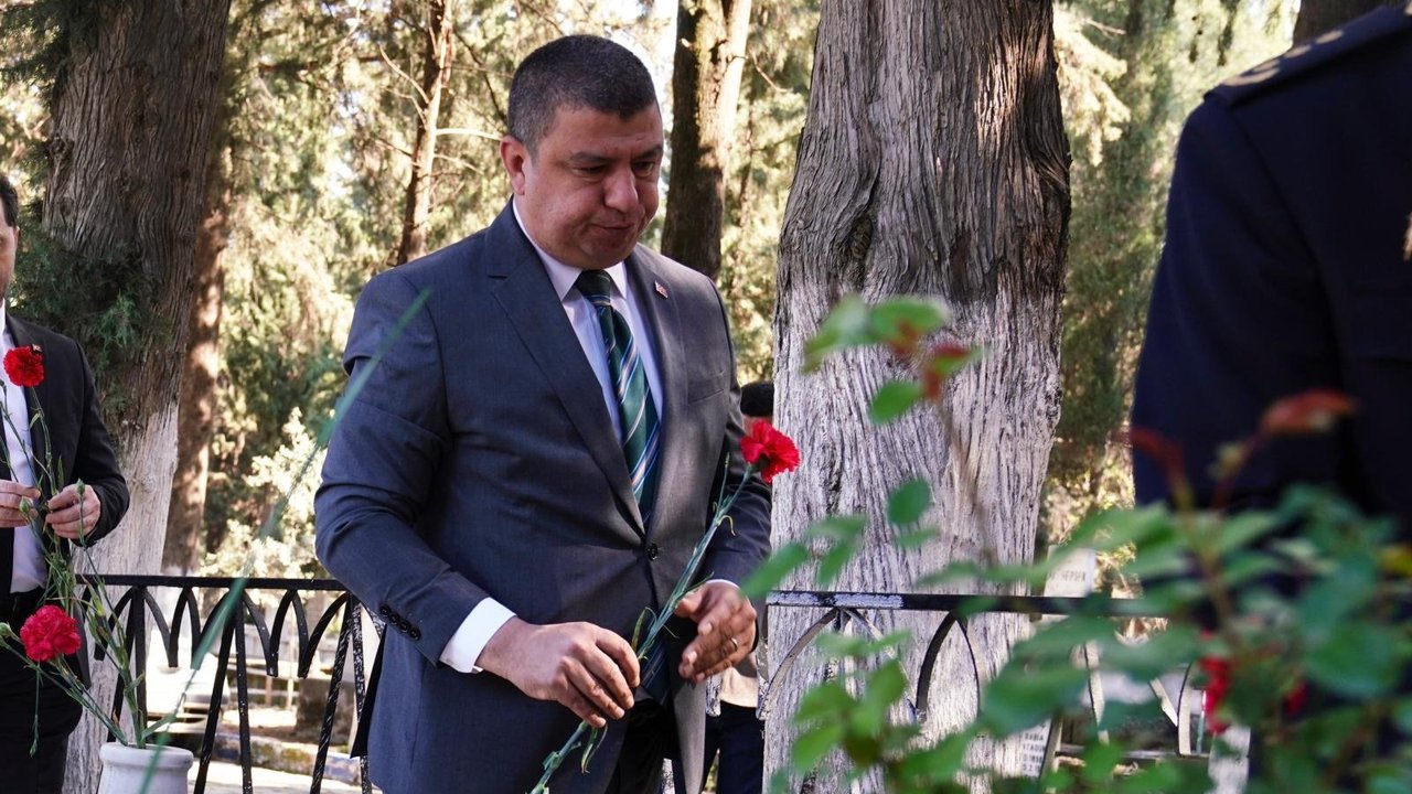 Şehitlerimiz için okunan duaların ardından protokol üyeleri, şehitlerin kabirlerine çiçek bıraktılar.