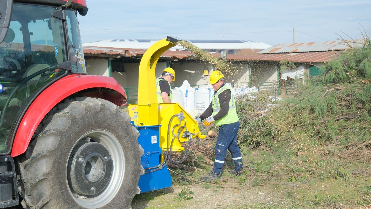 Günlük saha çalışmaları kapsamında toplanan ağaç dalı ve budak atıkları, traktör arkası özel dal öğütme makineleriyle işleniyor. Hacim küçültme işleminden geçirilen bu atıklar, kompost yapımında kullanılmak üzere ayrıştırılıyor. Bu sayede hem atık miktarı azaltılıyor hem de kimyasal gübreye alternatif, tamamen doğal bir materyal elde ediliyor.